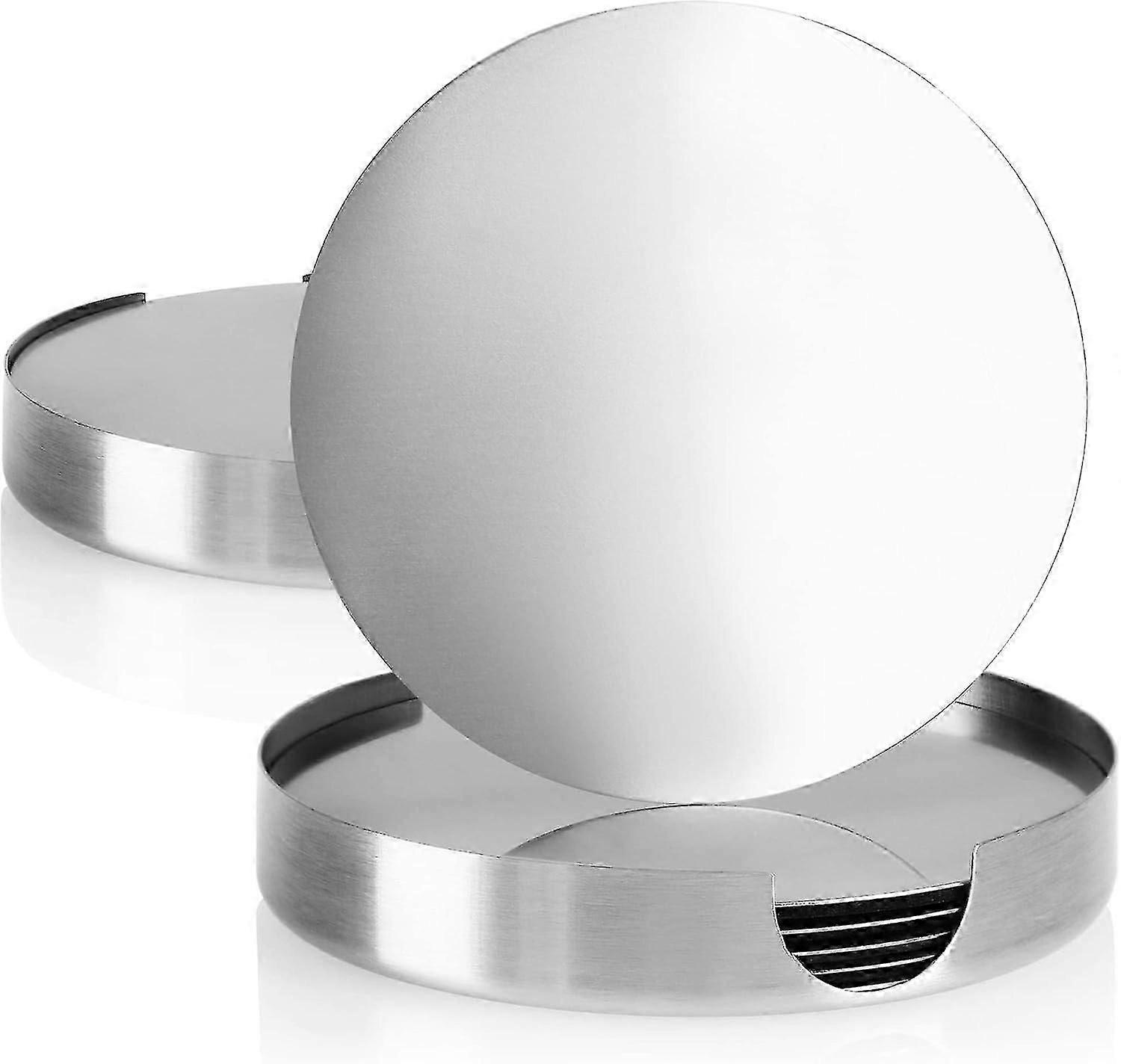 6 piece coaster set with stand stainless steel drink coaster round steel coaster