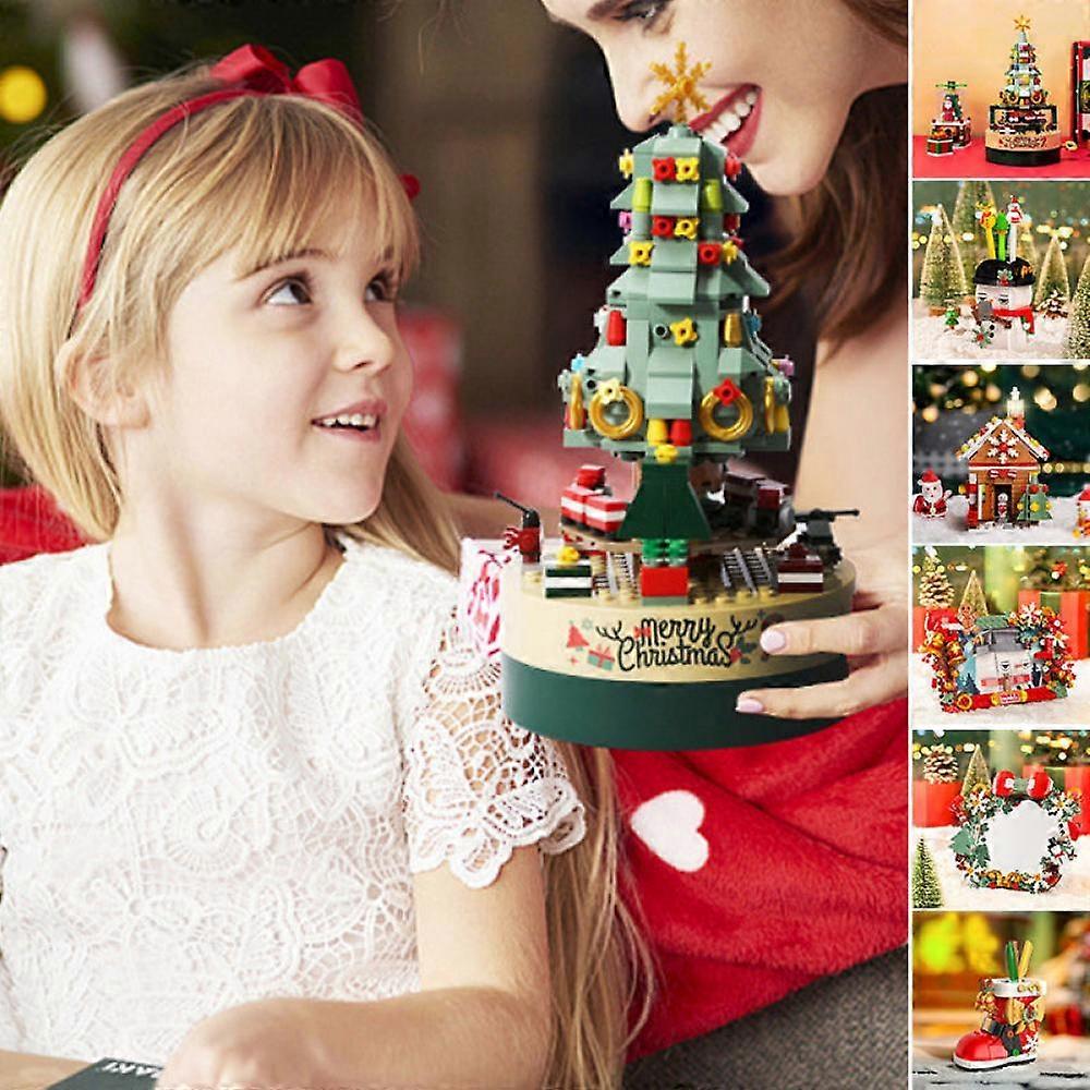 Christmas Tree Building Blocks Set, Christmas Music Box, Rotating Christmas Bricks Toy, A Great Holiday Present Idea for Christmas