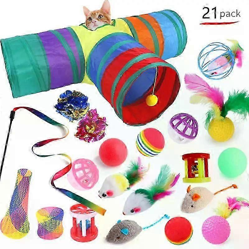 Pet Toy Combination Set Funny Cat Product Collapsible Rainbow Tunnel Puppy Ferrets Rabbit Play Tunnel Tubes Cat Supplies 21 Sets