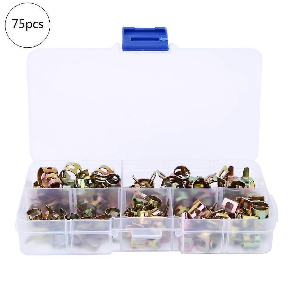 75PCS Hose Clamp 6mm/7mm/8mm/9mm/10mm Spring Hose Clips Pipe Fasteners Assortment Kit