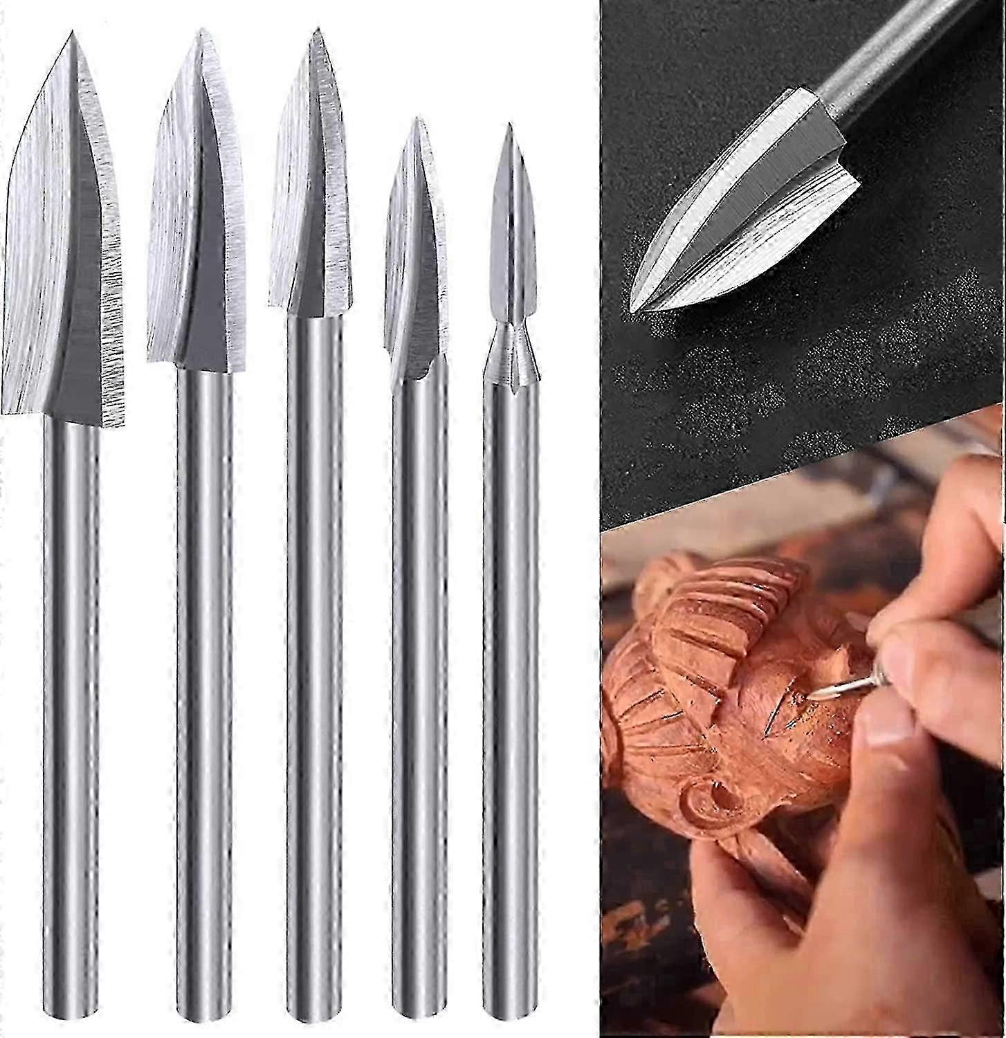 Wood carving drill bit set of 5 pieces with three-edge design, suitable for most rotary tools