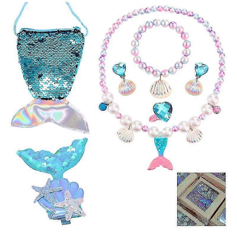 Mermaid Jewellery Set For Girls Kids, Kids Jewellery Sets For Little Girls, Children Jewelry Sets Include Handbag Necklace Bracelets