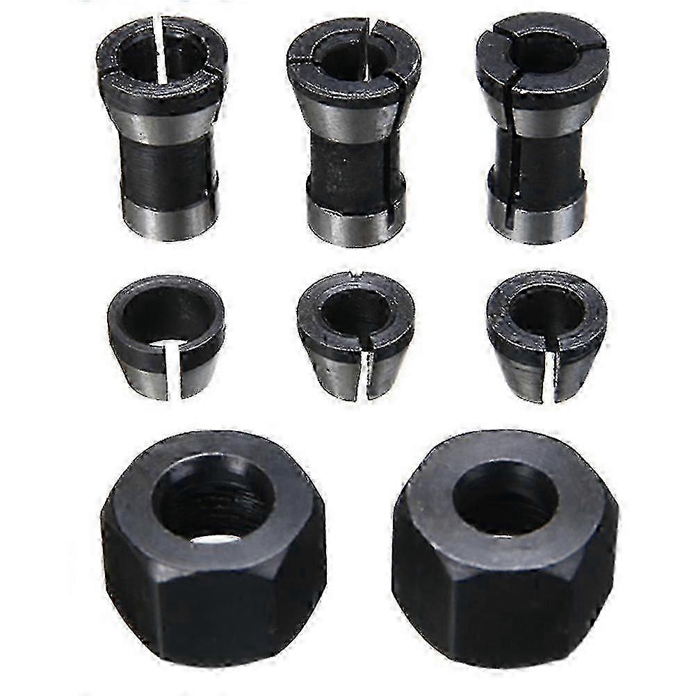 Router Chuck Compatible 8-Piece Precision Adapter Set with 6mm 6.35mm and 8mm Sizes Including Engraving and Trimming Tools