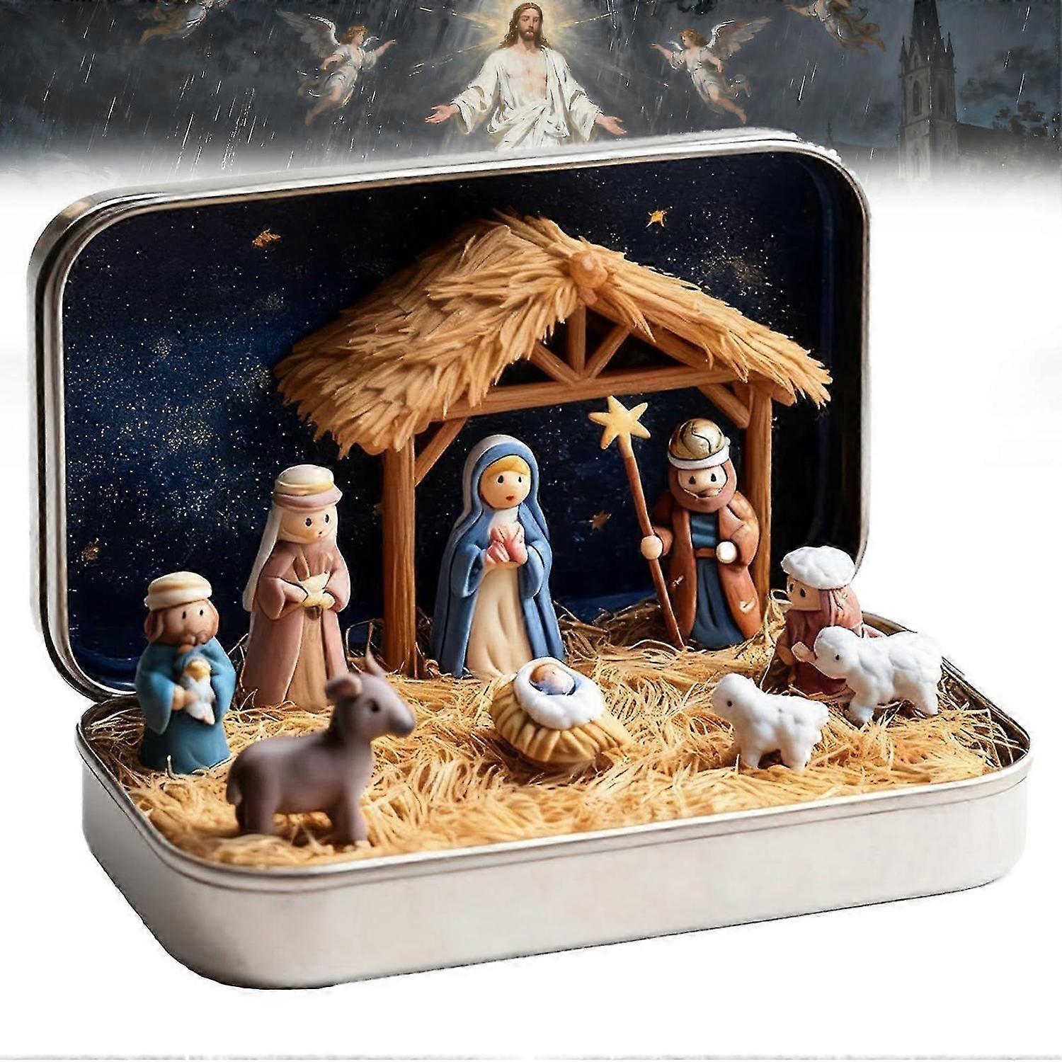 Christmas Manger Set,mini Nativity Ornaments Scene Decoration Gifts Resin Crafts New
