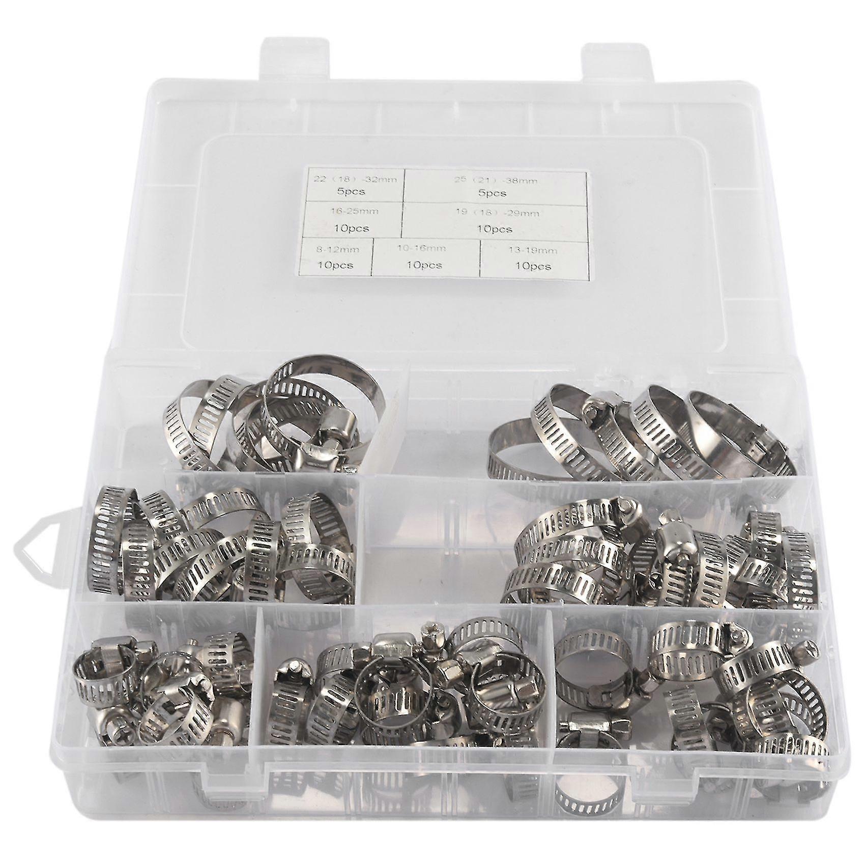 60-piece Hose Clamp Set, 8-38 Mm Pipe Made Of 201 Stainless Steel, 7 Sizes Hose , Hose Ties, For Pi