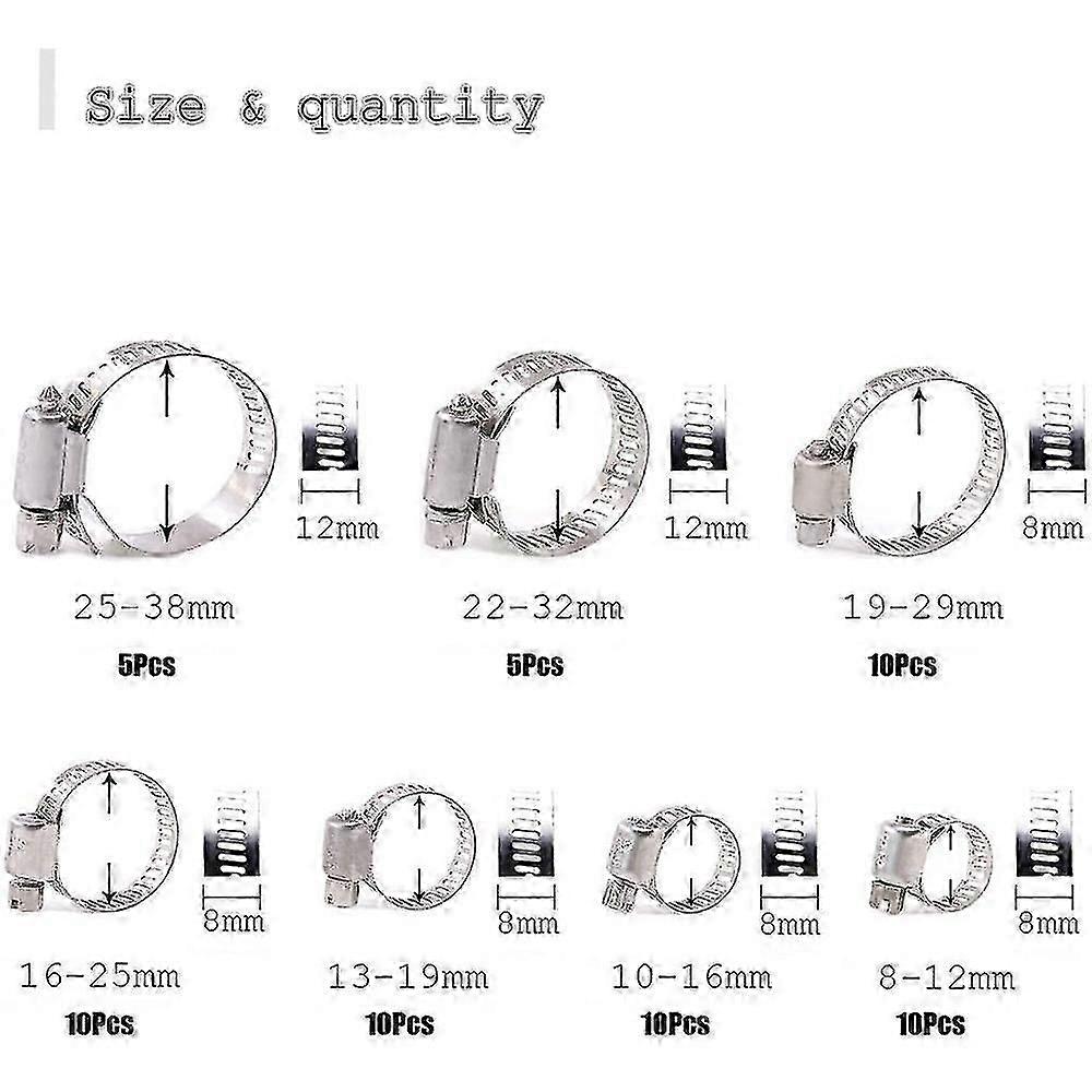60-piece Hose Clamp Set, 8-38 Mm Pipe Clamps Made Of 201 Stainless Steel, 7 Sizes Hose Clamps, Hose (tangling)