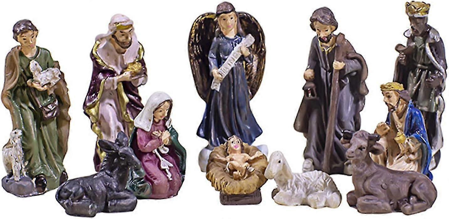 Nativity Scene Set Of 11 Figurines Resin Miniature Religious Manger Ornaments Christmas Tabletop Scenes For Religious Mantel Xmas Gift (11pcs) - DD