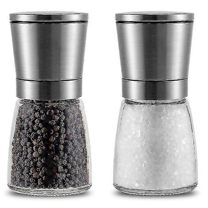 Stainless Steel Pepper Mill Set, Salt Pepper Mill Set Metal With Adjustable Coarseness, With Transparent Glass, Salt And Pepper Shakers For Grilling