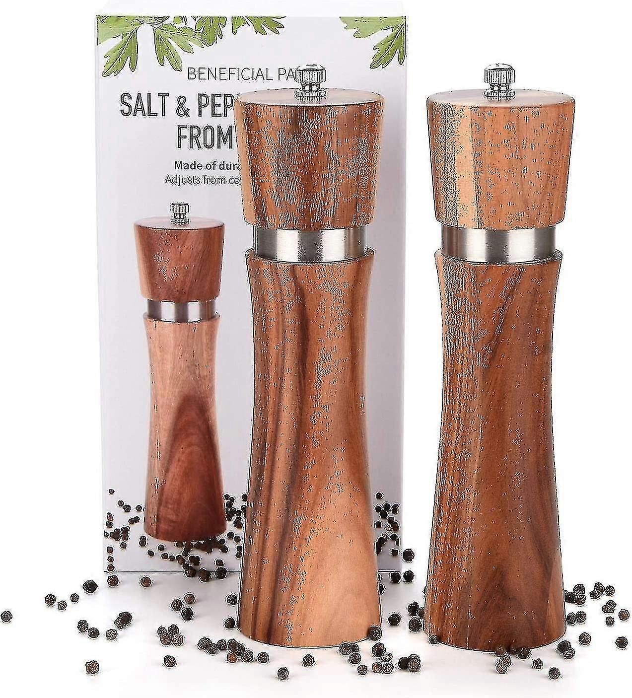 Salt And Pepper Grinder Set, Premium Acacia Wood Ceramic Grinder