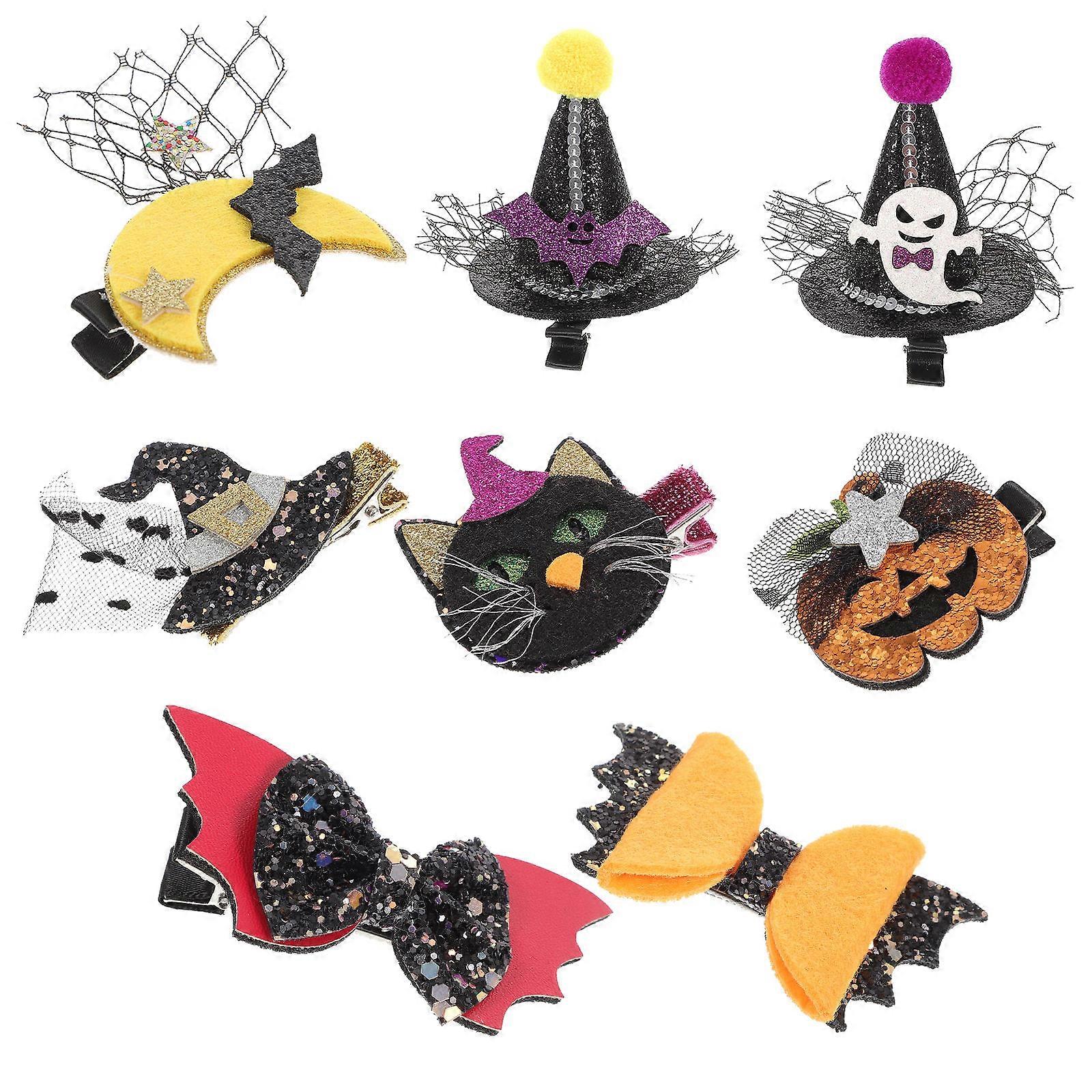 Halloween Hair Clips Set 8pcs Non Slip Pumpkin, Hat, Moon & Bow Designs for Costume Party Hair Accessories