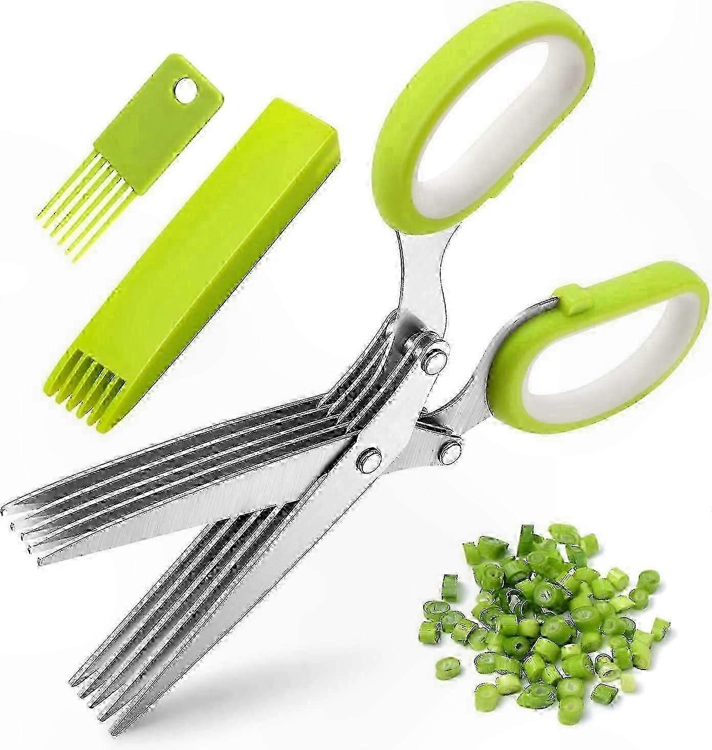 Multi-Functional Herb Scissors Set, 5-Blade Kitchen Tool with Cleaning Comb and Protective Cover, Durable Stainless Steel Design