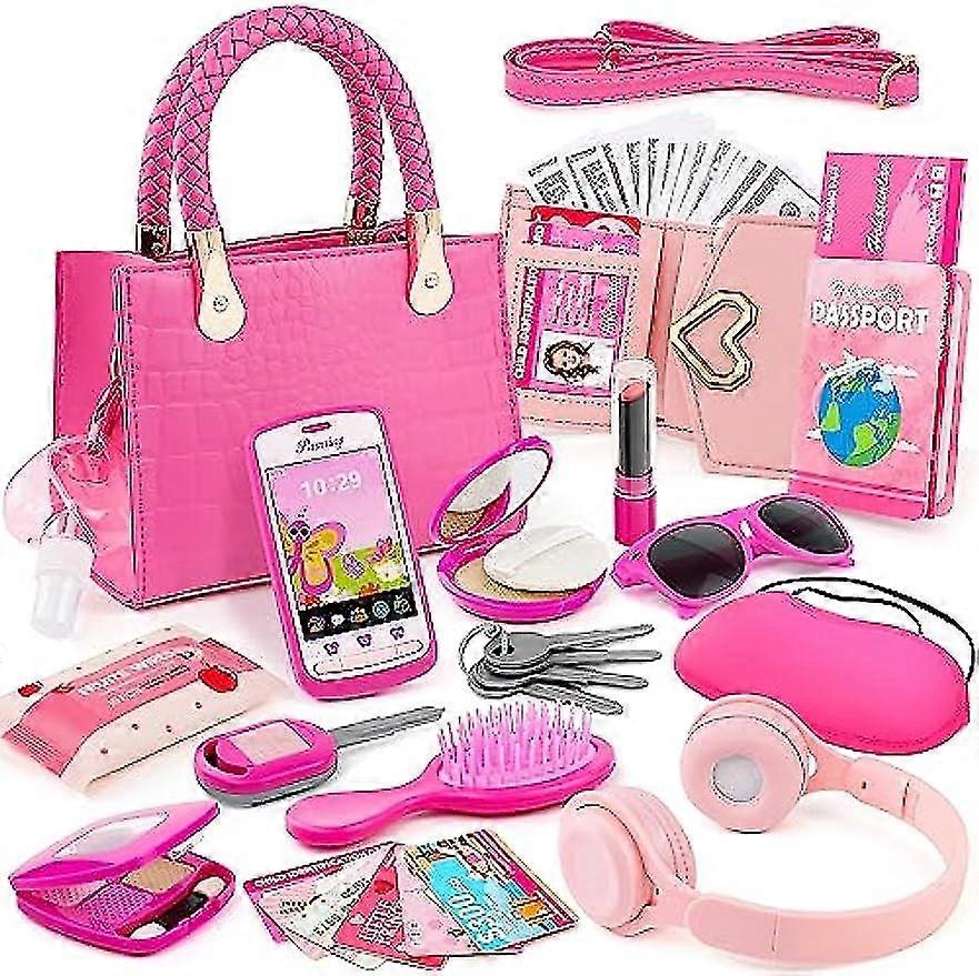 Little Girls Play Purse and Pretend Makeup Kit - 49 Piece My First Purse Set Includes Tote Bag, Mobile Wallet, Play Makeup Princess Jewelry Water Bott