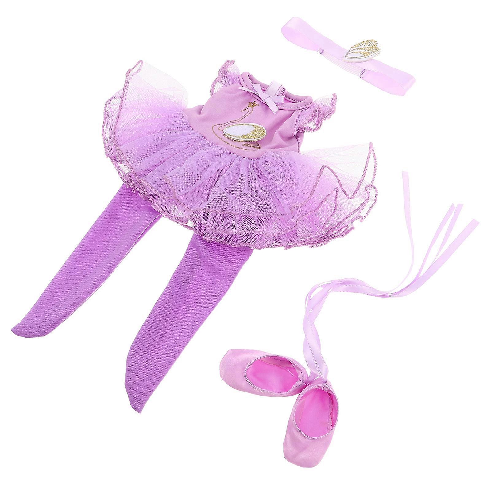 This doll ballet dress set combines style and functionality, offering a complete look for dolls. The outfit includes a skirt and matching accessories, making it ideal for pretend ballet classes or performances. It fulfills the need for practical doll clothing that enhances playtime and sparks children. Features -Color:Violet -Material:Polyester -Size:27.50X17.00X0.50cm/10.81X6.68X0.20in -Note: suitable for 14-inch dolls -Unique and charming design: the doll ballerina outfit features a distinctive design that adds personality and charm to your doll's wardrobe - detailing: this ballerina doll outfit is crafted with precision, showcasing the doll's elegance and cuteness -Suitable for various play scenarios: costumes for girls are ideal for different play settings, providing endless fun for kids -Charming toy: this doll clothes tutu set fits all dolls, giving children more options for imaginative play -Exclusive doll attire: princess dress up is designed to enhance the playability and collectible value of your doll Package list: 1 x headband 1 x skirt 1 x shoe