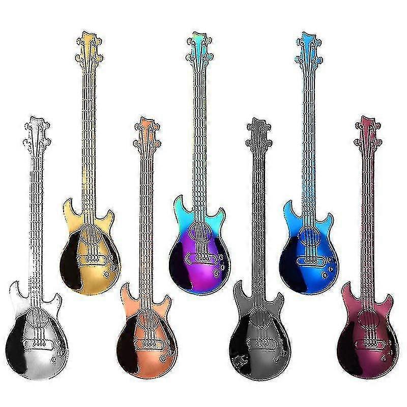 Product parameters:ColorGold, purple, blue, black, rose gold, silver, magic colorMaterial Stainless Steel,MetalItem Weight126gScope of delivery:7 pieces coffee spoonsProduct description:UNIQUE GUITAR SHAPE: A set of 7pcs different color spoons, it looks like a mini guitar, holding it will bring you a nice enjoyment.PREMIUM QUALITY METAL SPOONS: Made of high quality 18/8 (304) stainless steel with a comfortable ergonomic handle, highly polished, shiny and with a smooth surface.EASY TO CLEAN: Carefully polished and smooth edges will not hurt your hand. You can put them in the dishwasher and they come out perfect every time with no damage.WIDE APPLICATION: Can be used as dessert, soup, ice cream, sundae, ice tea spoon, coffee mixing spoon, cocktail mixing spoon. Suitable for home, bar, party, dessert shop, restaurant.A APPROPRIATE GIFT: With fine workmanship and luxurious appearance, this set of spoons is the best gift for friends and families, especially for coffee lovers, which is good for Christmas, birthday, anniversary, housewarming, etc.Notice:1.Due to the difference between different monitors, the picture may not reflect the actual color of the item.2.Due to manual measurement, there may be an error of 1-2mm.