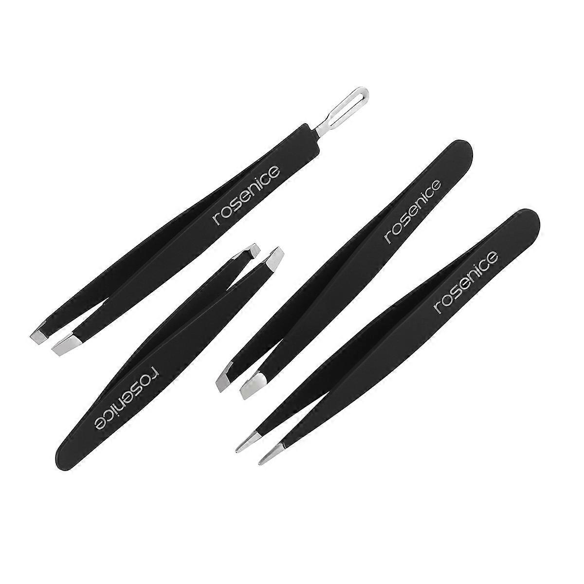 Professional Tweezer Set Stainless Steel Eyebrow Tweezers Kit Black Business Trip Corrosion Resistant 4Pcs