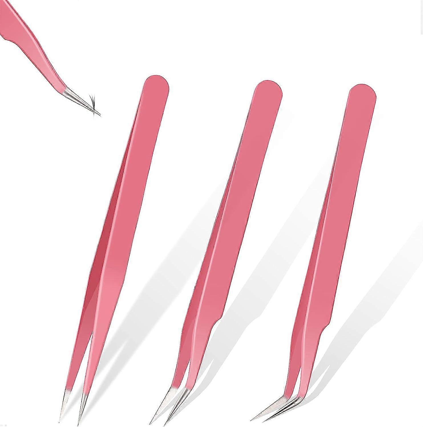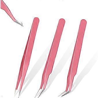 Eyelash Extension Tweezers Set Stainless Steel Straight and Curved Tip Tweezers Metal Eyelash Tweezers False Lash Application Tool for Eyelash Extensi