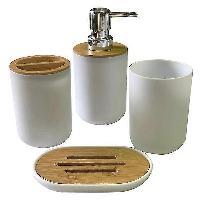 Bathroom Accessories Set Soap Dispenser Bottle Dish Washroom Toothbrush Holder Cup Suit White
