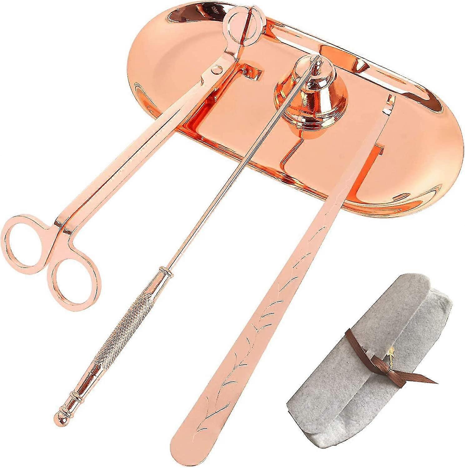 Candle Accessory Set 4 In 1, Candle Wick Trimmer, Candle Snuffer, Candle Wick Cutter, Candle Wick Dipper Rose Gold For Candle Lovers(with With Tray An
