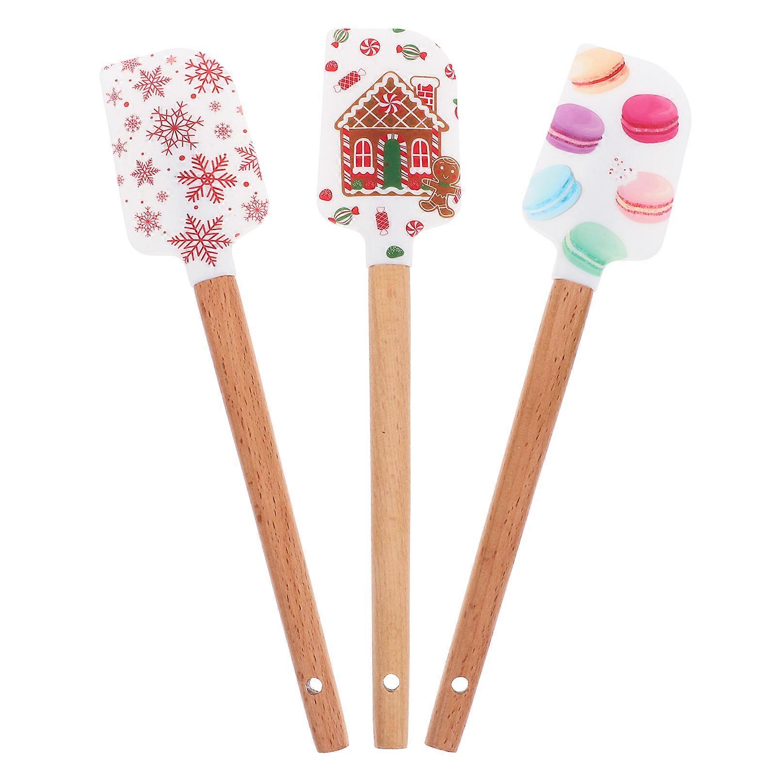 Christmas Silicone Spatula Set - 3Pcs Wooden Handle Dish Scraper Non-Stick Mini Kitchen Scrapers Baking Tools for Cake Cream Cute Christmas Kitchen Ut