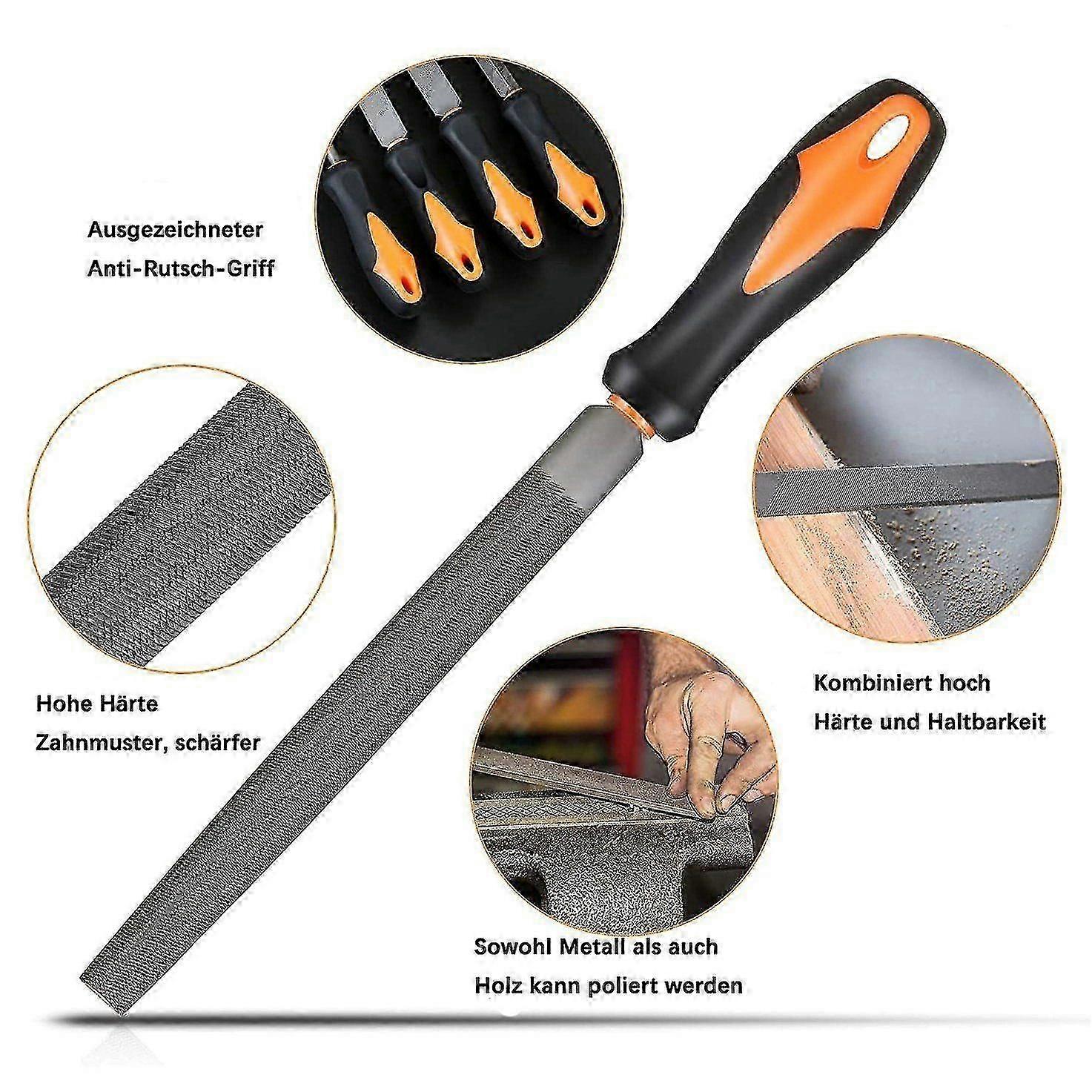 File set, set of 11 metal files, wooden file, workshop file, including flat file, half-round file, round file, triangular file