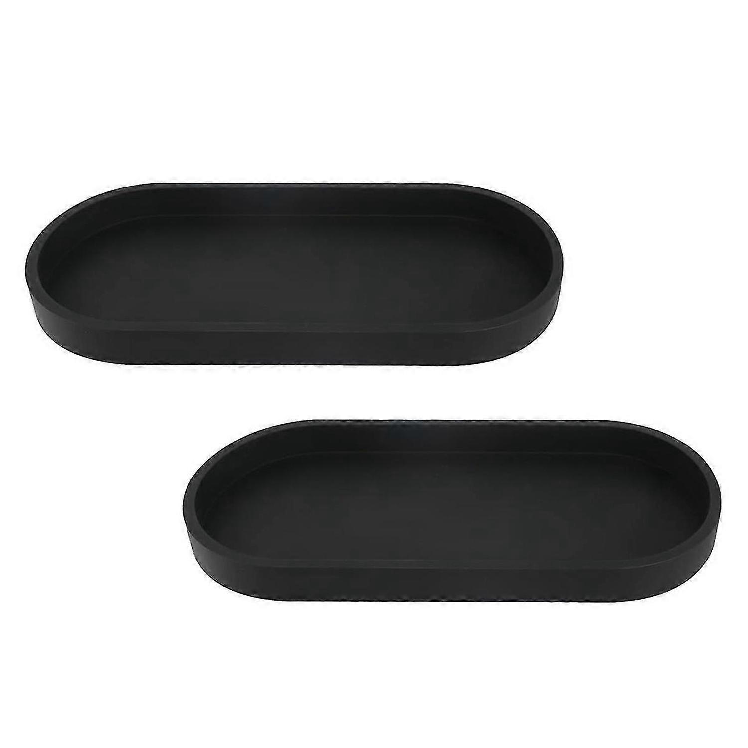 Set of 2 Bathroom Trays, Decorative Tray, Black Silicone Storage Tray, Small Tray for Washbasin, Bathtub (Oval)
