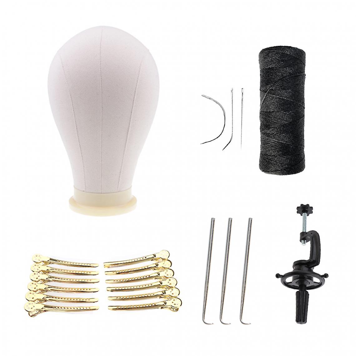 Set Of Mannequin Head Wig Model Head + 10 X Pins + Sewing Thread + 3 X Needles C, I, J) + Head Holder Clip + 12 X Hair Clips
