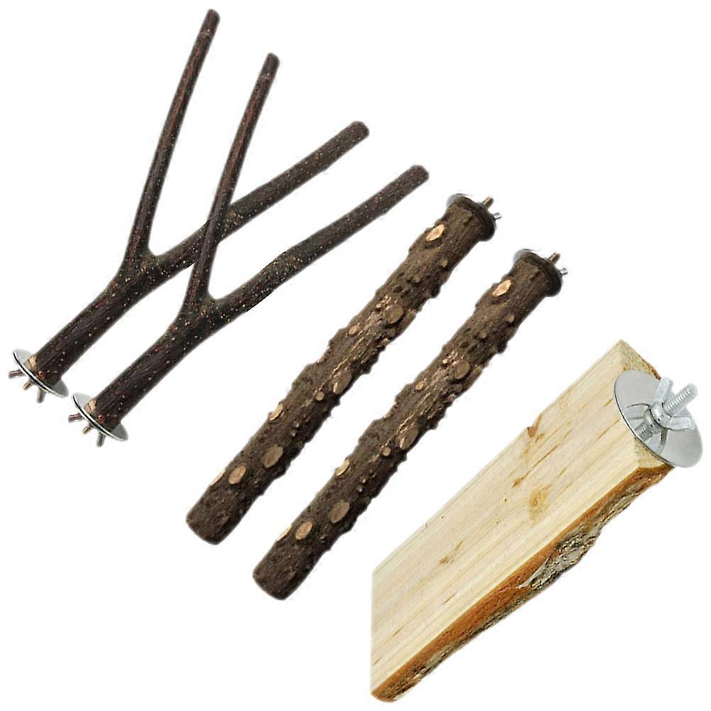Natural Bird Perches Set of 5 Durable Chewable Stands for Parrots Cockatiels and Parakeets Safe Cage Accessories for Beak Grinding and Play