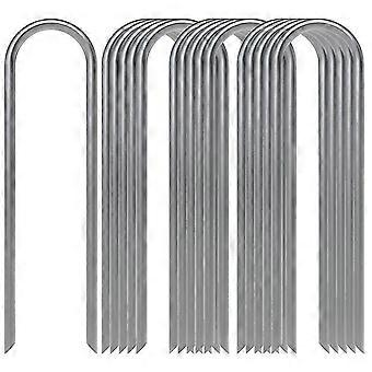 Set Of 100 Galvanized Steel Stakes 154cm3mm Ground Anchor Compatible Tarpaulins Rounded U Gardening Nets