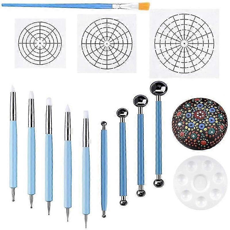 Set of 14 Mandala Dotting Stencil Tools Rock Painting Kit Dotting Tools Include Templates, Paint Tray, Mandala Tools