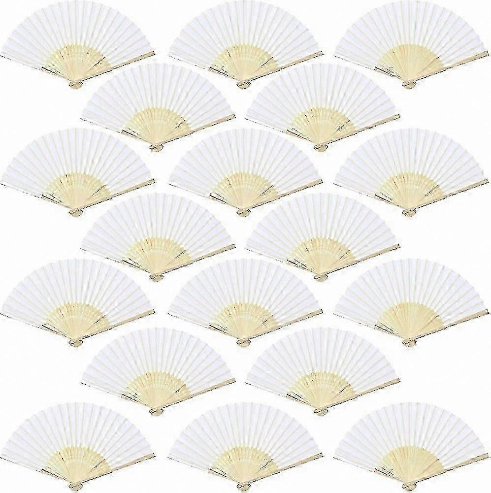 Set of 18 Bamboo Folding Fans, White Handheld Design for Events & Celebrations