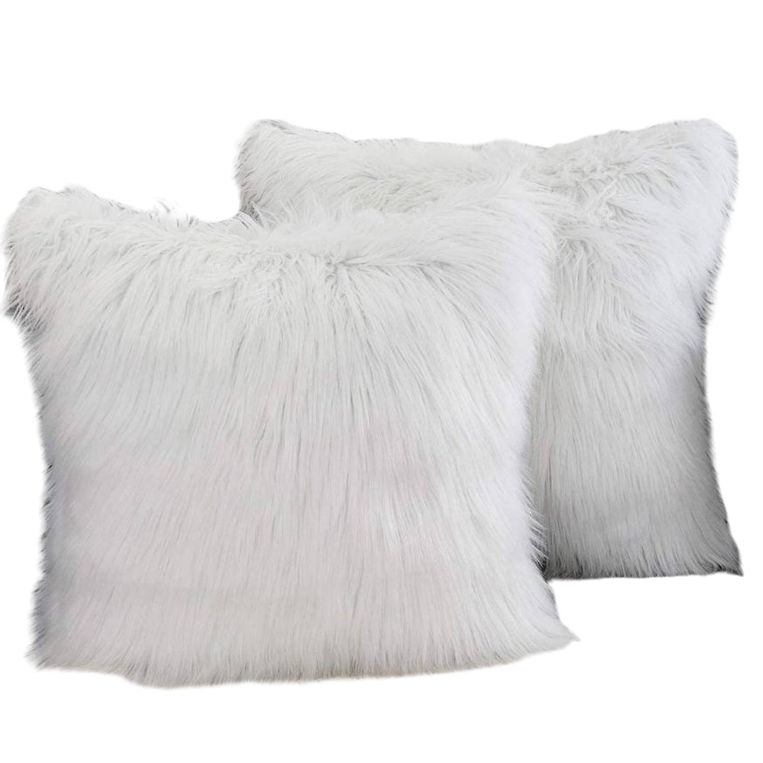 Set Of 2 Decorative Pillow Covers New Luxury Series Merino Style Faux Fur Fluffy Throw Pillow Covers Square Fuzzy Cushion Case