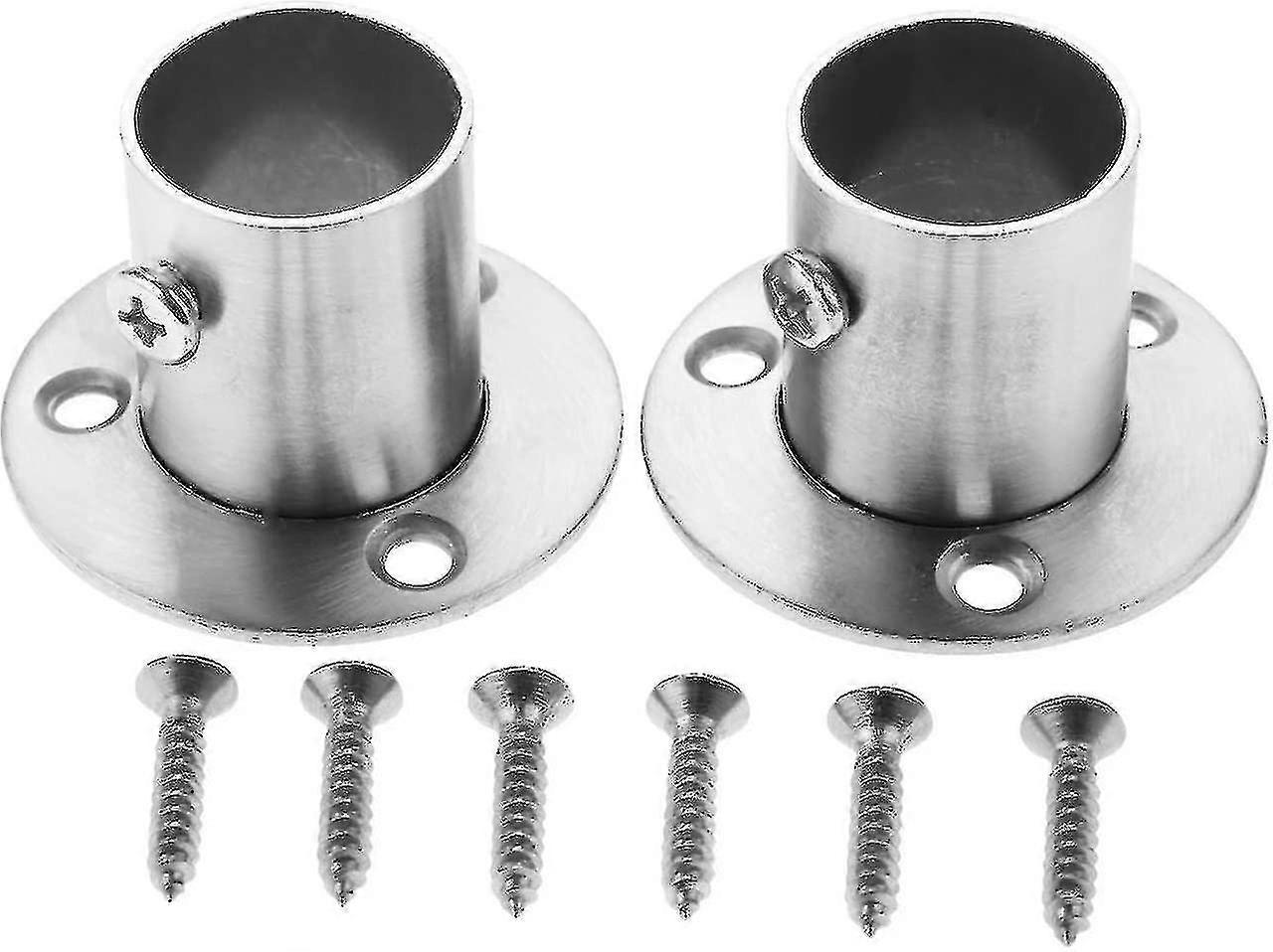 Set Of 2 Stainless Steel Wardrobe Rod Brackets With Screws For 22mm Diameter Tube