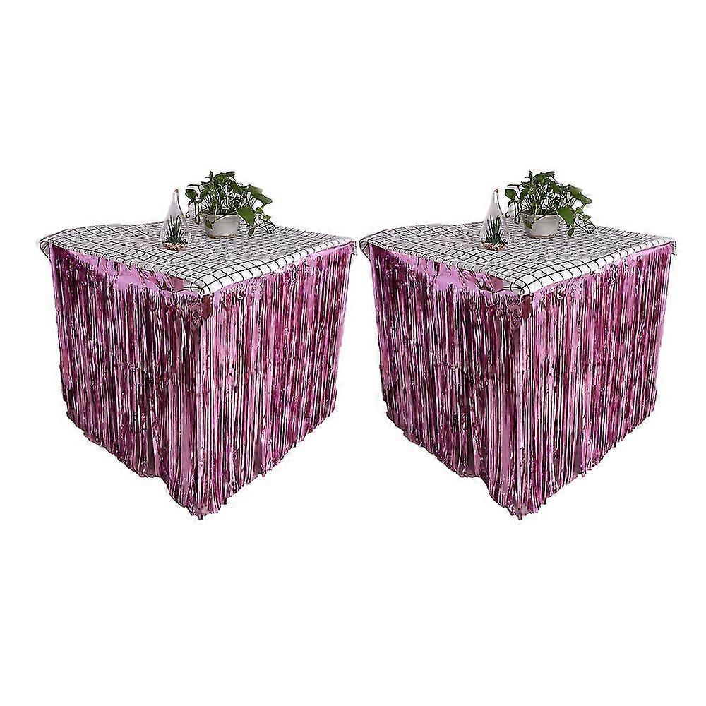 Set Of 2 Metallic Foil Fringe Table Skirt, Tinsel Disposable Skirting For Parade , Party, Birthday