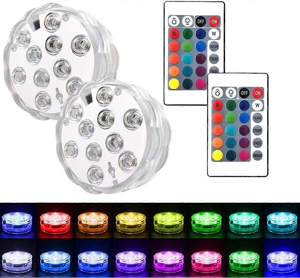 Set of 2 Submersible LED Pool Lights for Aquarium, Jacuzzi, Pond, Pool, Base, Vase, Garden, Wedding, Party