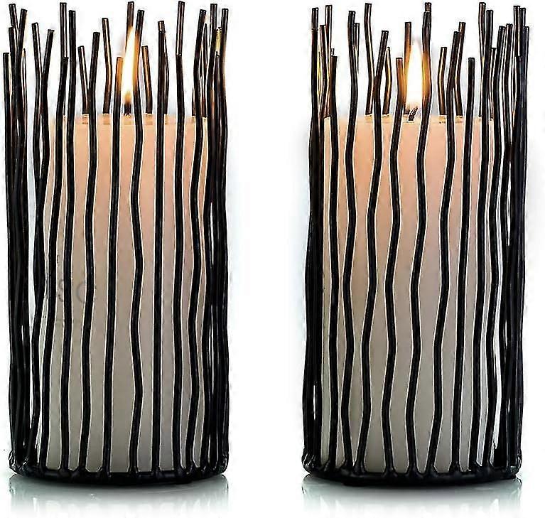 Set of 2 Metal Willow Column Candle Holders LED Flameless Electronic Column Candle Holders, Black-Yvan