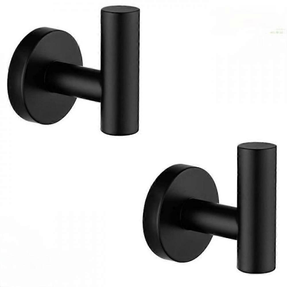 Set of 2 wall hooks, black stainless steel, corrosion-resistant, stable & durable-These stainless steel wall hooks are perfect for hanging towels and bathrobes. Their sleek black finish is corrosion-resistant and durable. Available in a set of two, they add a touch of modern flair to your bathroom.