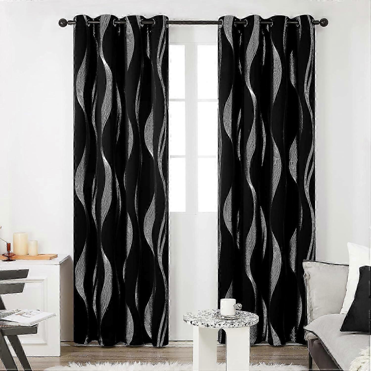 Set of 2 Dining Room Kitchen Bedroom Eyelet Curtains, 132x244cm, Halloween Black, Pattern Line Door Curtain Silver Thermal Blackout Hotel Interior