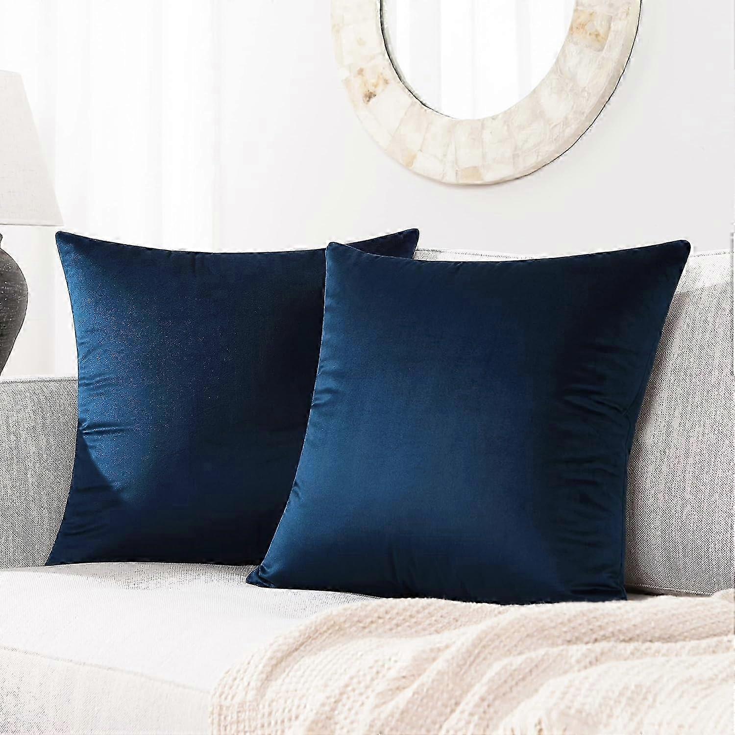 Set of 2 Cozy Velvet Square Decorative Throw Pillow Covers for Couch and Bed, Navy Blue, 18 x 18 Inc