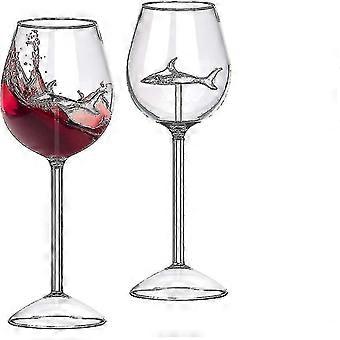مجموعة من 2 كؤوس النبيذ سمك القرش، والزجاج النبيذ الأحمر مع سمك القرش داخل، المزامير الكريستال الكؤوس هدية الجدة