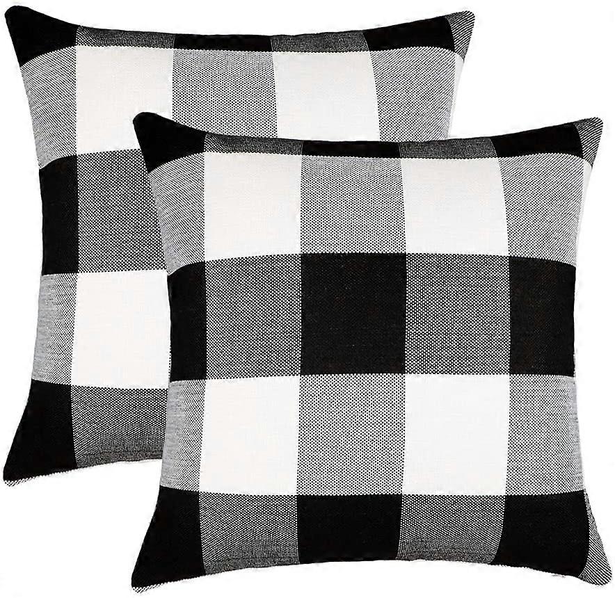 Set of 2 Farmhouse Buffalo Check Plaid Throw Pillow Covers Cushion Case Polyester Linen for Fall Home Decor Black and White, 18 x 18 Inches