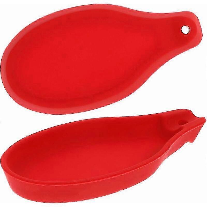 Set of 2 Red Heat Resistant Silicone Spoon Rests