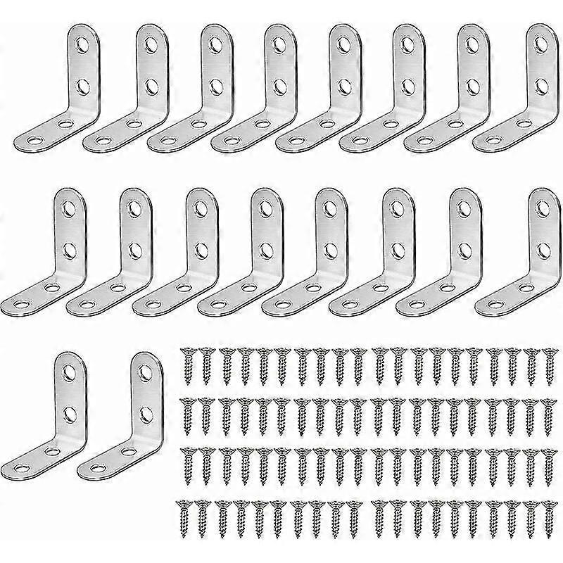 Set of 20 Squares with Screws, 40 x 40 mm L Shape Brushed Stainless Steel Angle with 80 Screws, 90 Degree Angle, Wood Angle, Brushed Stainless Steel