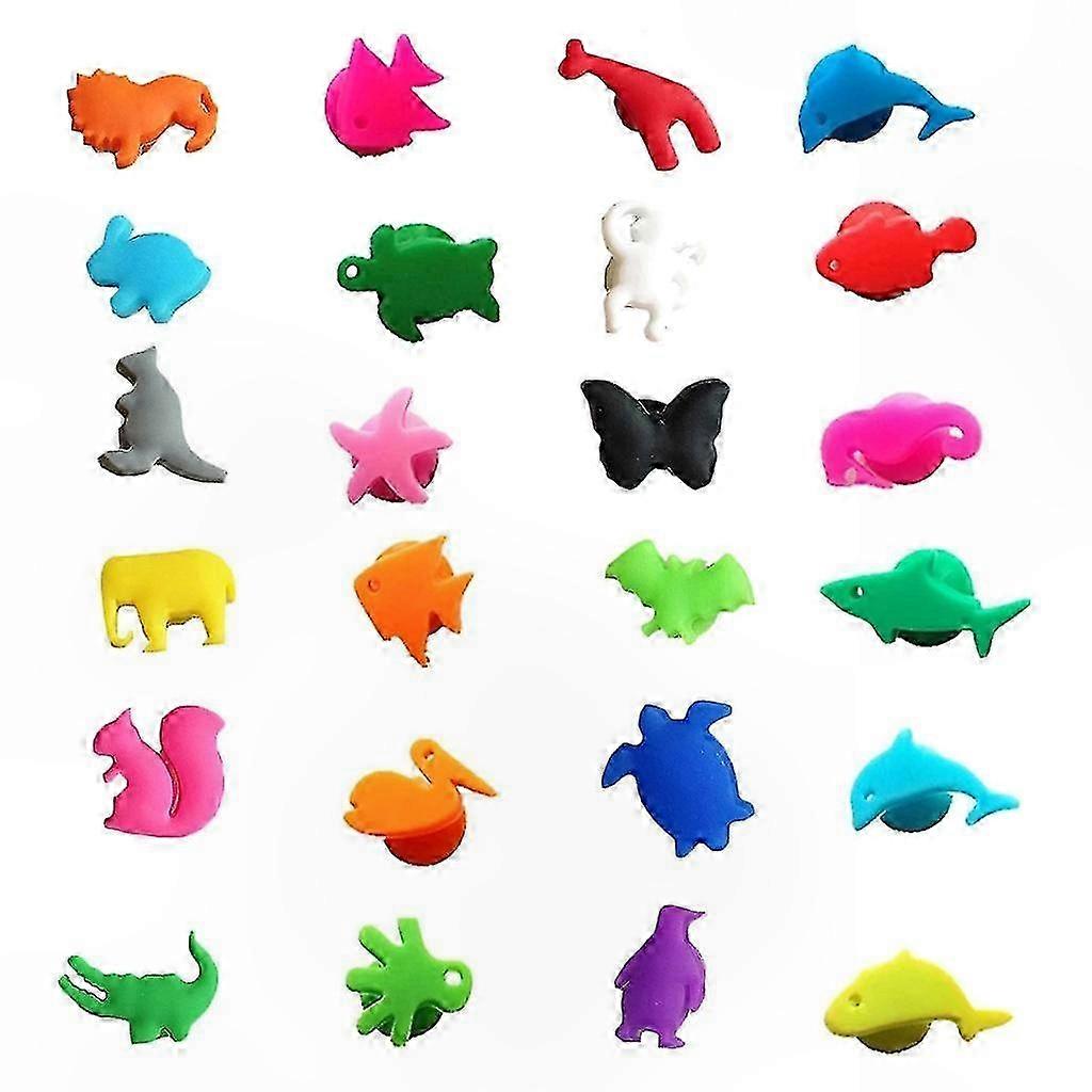 Set of 24 Silicone Drink Glass Charms with Marine and Terrestrial Animal Designs for Party and Bar Use Identification Tags