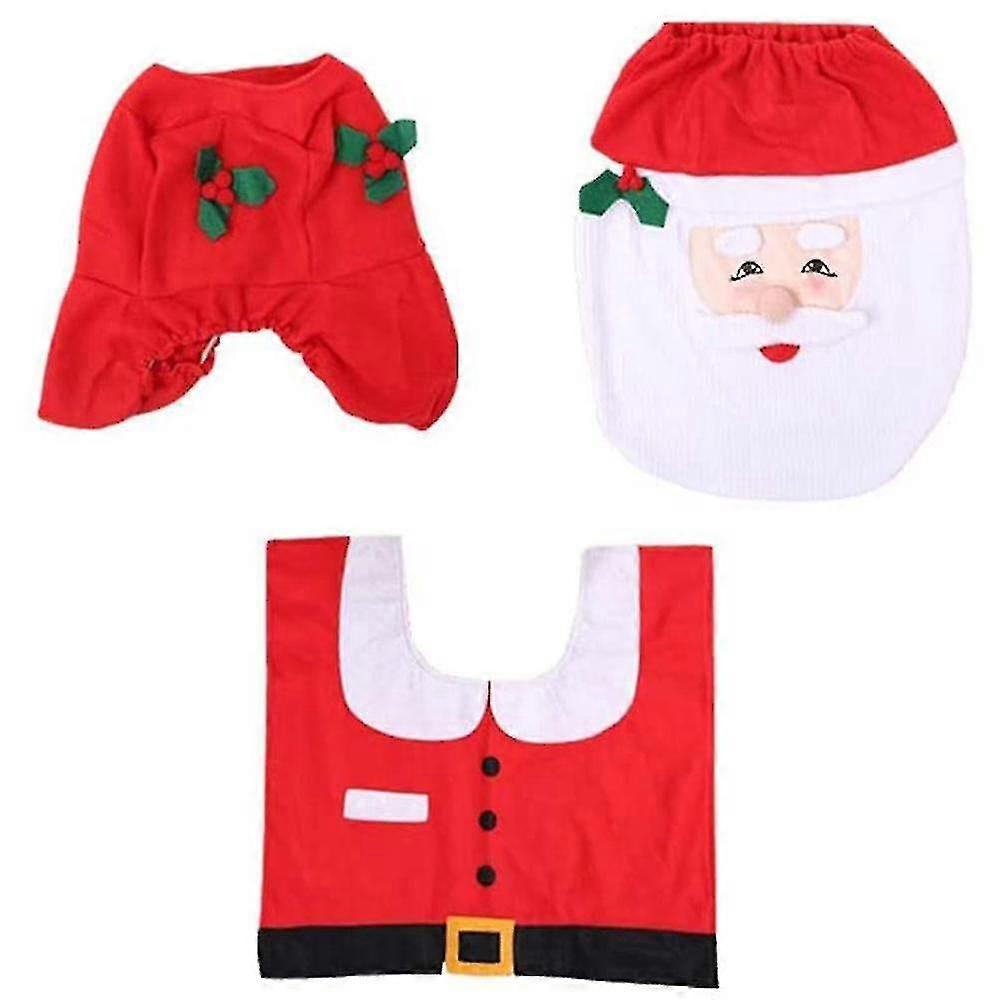 Set Of 3 Christmas Bathroom Set Santa Claus Toilet Seat Cover Rug Set