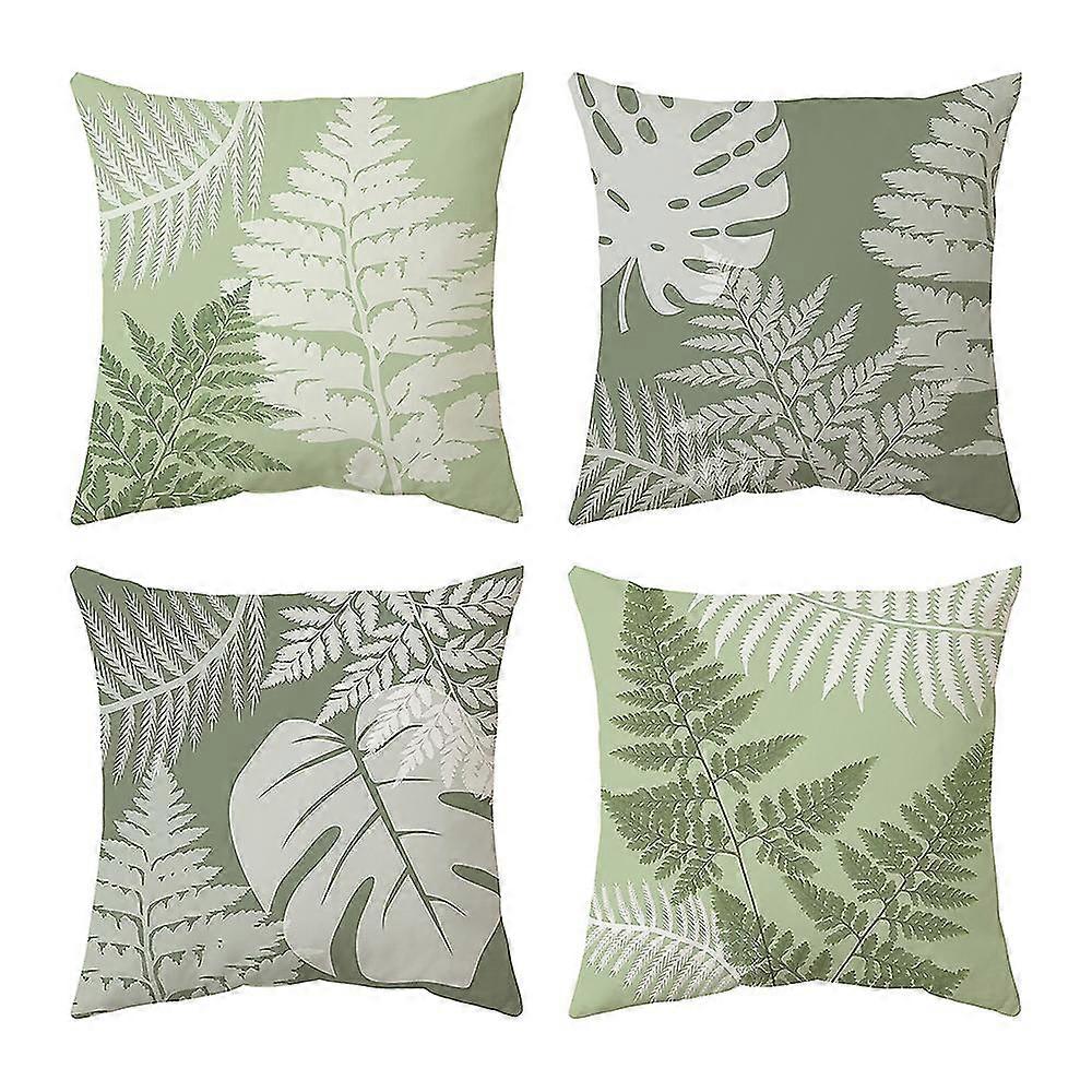 Set Of 4 Leaves Decorative Throw Pillow Covers Square Summer Cushion Covers Plant Pattern