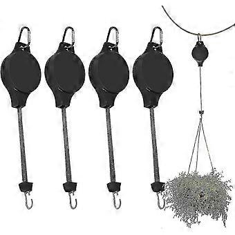 مجموعة من 4 بكرات نباتات قابلة للسحب، بكرة خطاف نباتات قابلة للتعديل، سلة زهور معلقة