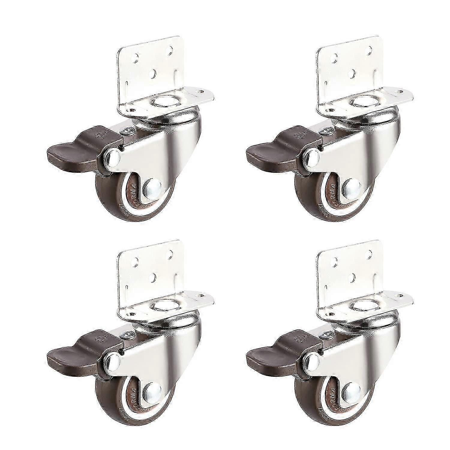 Set of 4 TPE Furniture Casters with Brake, Swivel Casters with L-Mount Plate, Rubber Castors for Nursery, Furniture, Flower Stand (25mm).