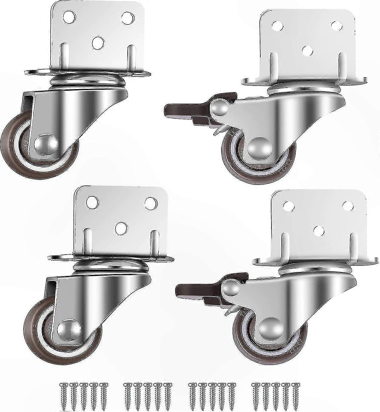 Set of 4 Small 25mm Swivel Casters with Brake, L-Mount Plate for Furniture, Flower Stands, Nurseries