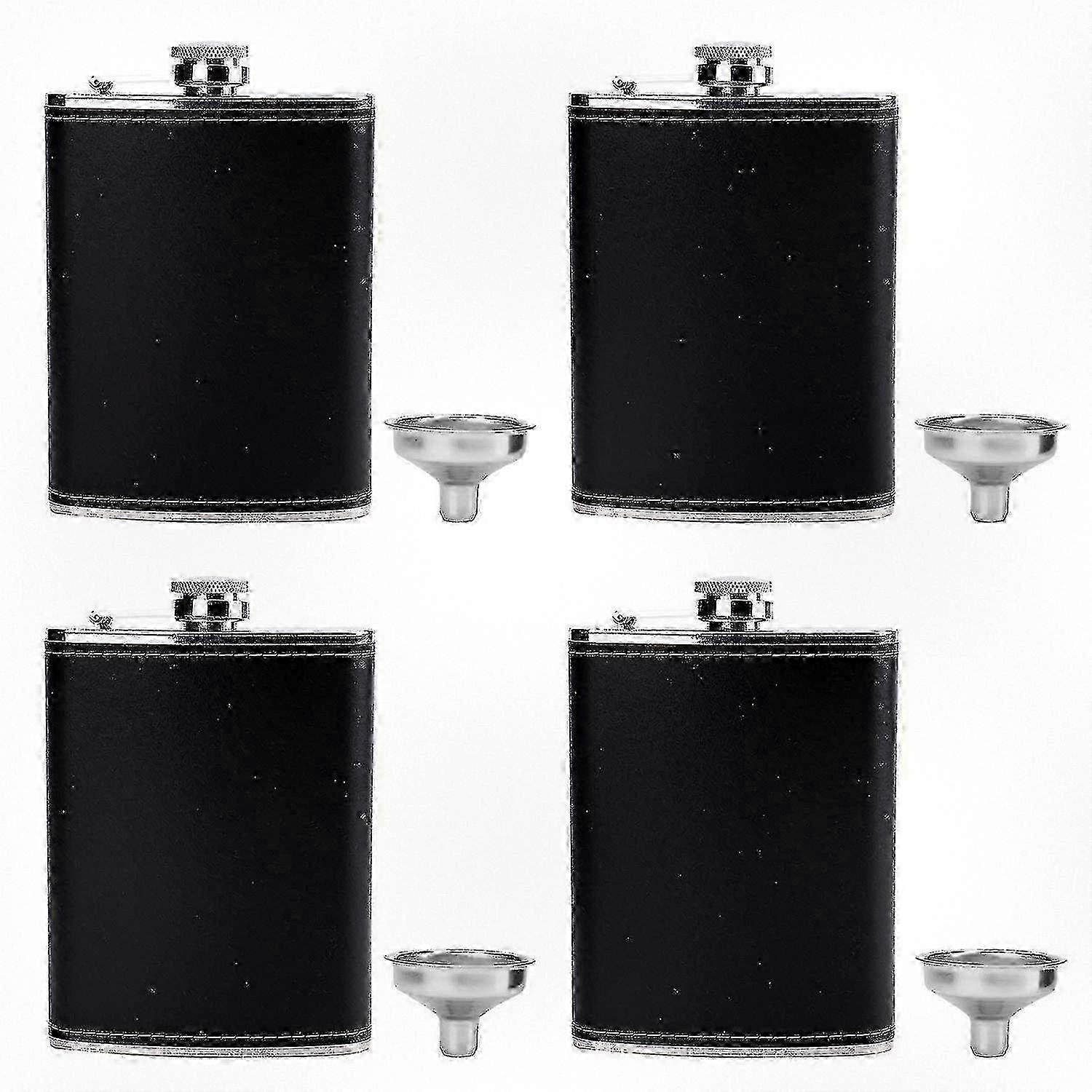 Set of 4 Pocket Flasks for Liquor, 8 Oz Leakproof Stainless Steel Flasks with Leather Covers and Funnels