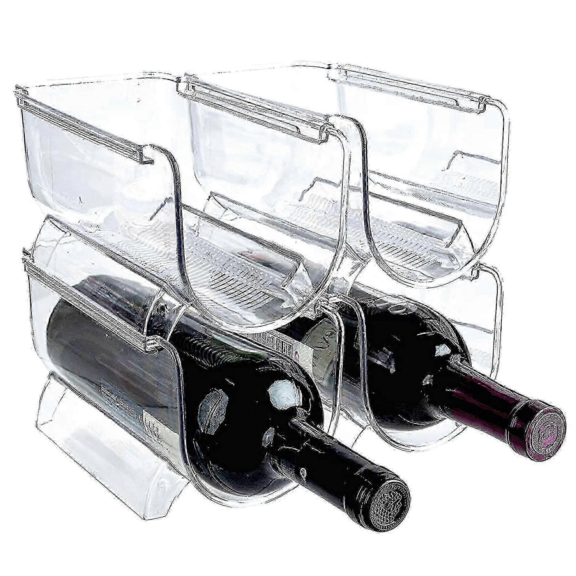 Set Of 4 Wine And Water Bottle Organizer, Stackable Plastic Wine Rack Holder Compatible With Pantry, Kitchen, Fridge, Ideal Storage - ya01 hwy